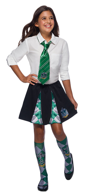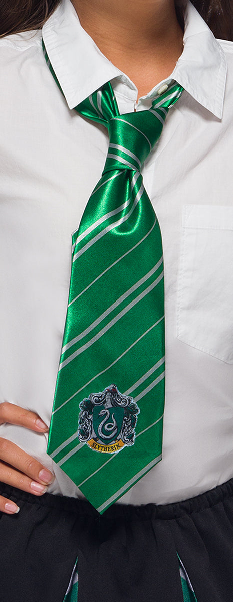 Deluxe Slytherin tie to complement your Hogwarts school uniform. Experience the magic and sorcery of the most beloved wizarding world with its most important accessories. Become the next Harry Potter, Hermione, Ron, or any other favorite character and defeat the dark shadows of evil. This product is officially licensed Harry Potter merchandise.