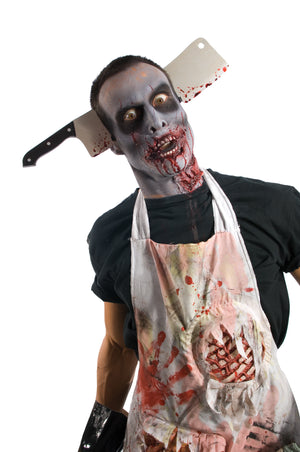 The zombie butcher knife headband, the perfect accessory for your zombie butcher costume this Halloween.