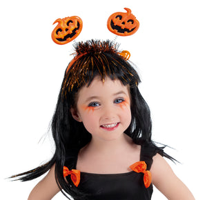 The pumpkin spring headband is a fun accessory for your Halloween party. When you move your head, the little ghosts will move with you.