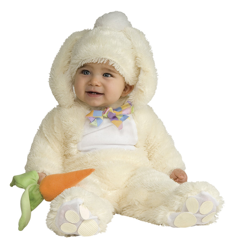 Vanilla bunny costume for the little one in the family. A delicious and adorable bunny jumpsuit that is designed to make diaper changing easy. Includes hat and carrot. Ideal for carnival parties, Halloween, birthday parties, and costume parties.