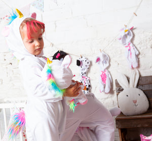 Original Cry Babies Dotty costume for children, consisting of a jumpsuit with attached hood, pacifier, tail, and squeeze bottle. The most adorable puppy from your favorite series. Bring magic to your world and become this friendly cry baby. This product is officially licensed by Cry Babies.