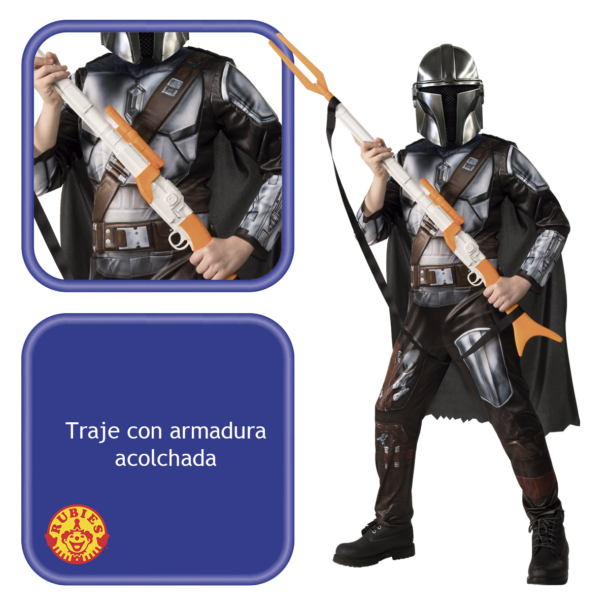 Deluxe Mandalorian silver costume for children, consisting of a padded armor suit, cape, and mask. Bring magic to your world and become the most tenacious mercenary and warrior in the universe. This product is officially licensed by Mandalorian.