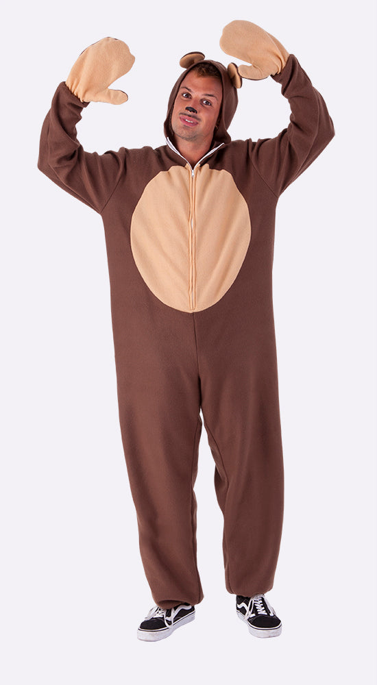 Adult bear costume consisting of a jumpsuit with tail and hood. Invite your friends to create an animal-inspired group, and each person can wear the costume of their favorite animal. Yours will undoubtedly be the bear. Ideal for carnival and costume parties.