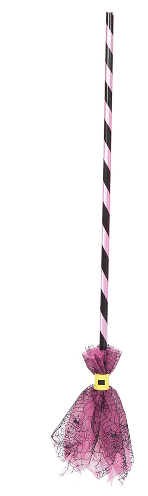 Pink Spider Web Witch Broom 85 cm