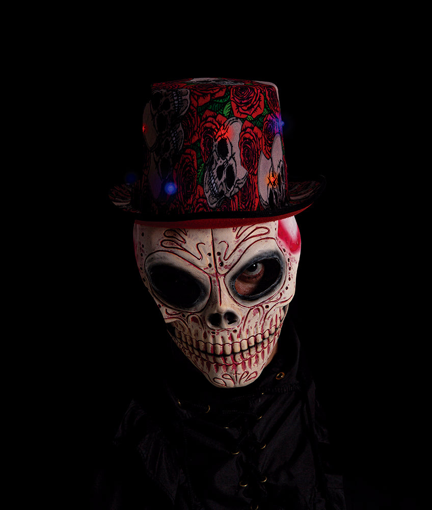 A skull and rose top hat with lights is the perfect accessory for your costume. Become a true, authentic witch. Don't forget to always include it in your Halloween costume.