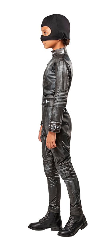 Selina Kyle è famosa per la sua tuta nera aderente, le orecchie a punta e la sua arma a forma di frusta. Interpretata da molte attrici famose nel corso dei decenni, tra cui Michelle Pfeiffer e Anne Hathaway, Catwoman è stata protagonista di numerosi film della Warner Bros. Include: tuta aderente dall'aspetto lucido con stampa digitale, con collo e polsini con dettagli in schiuma con stampa digitale. Cintura lucida con retro in schiuma con dettagli modellati e chiusura in velcro. Cappellino con maschera in lana.