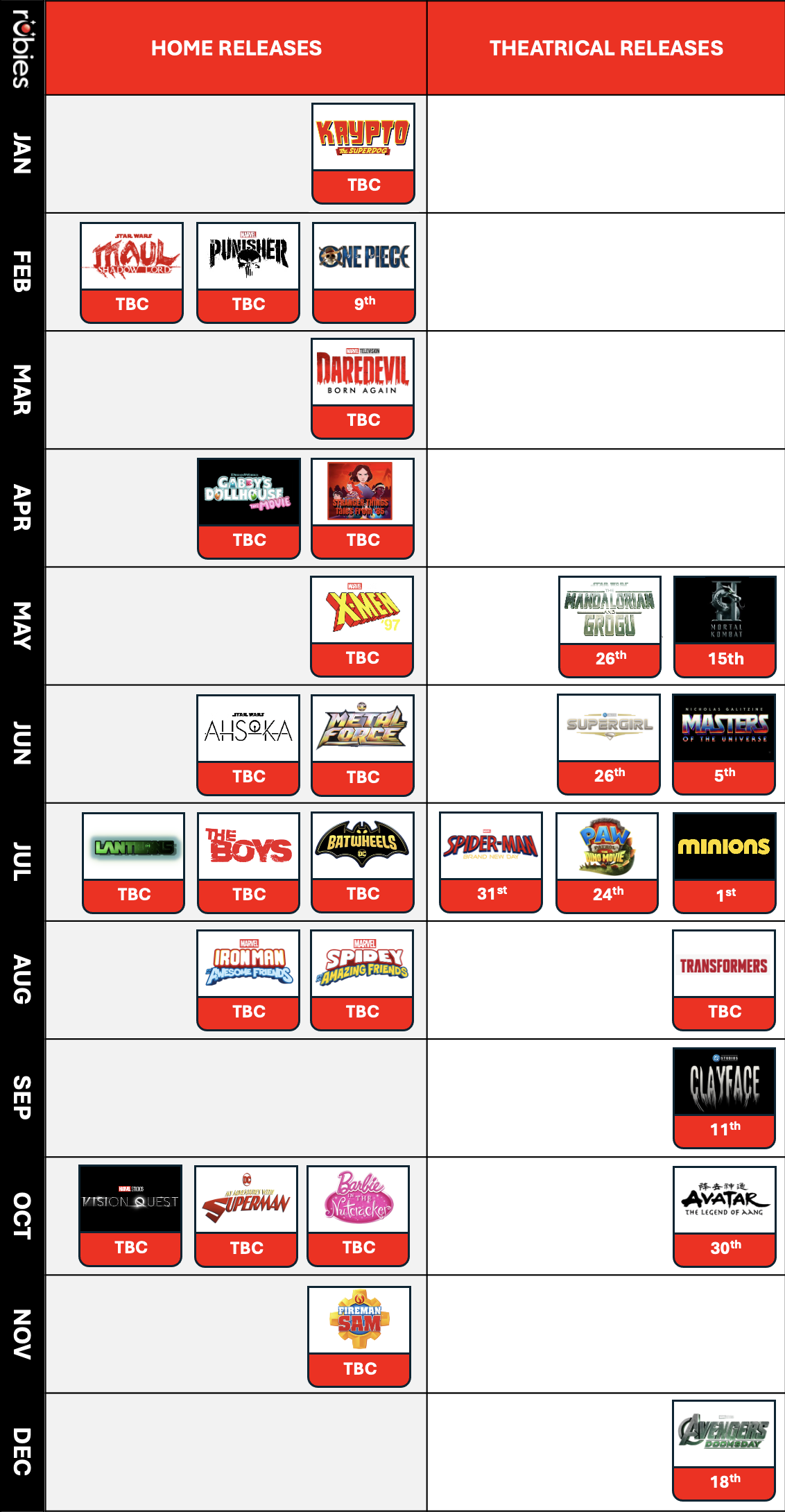 calendario de entretenimiento 2026