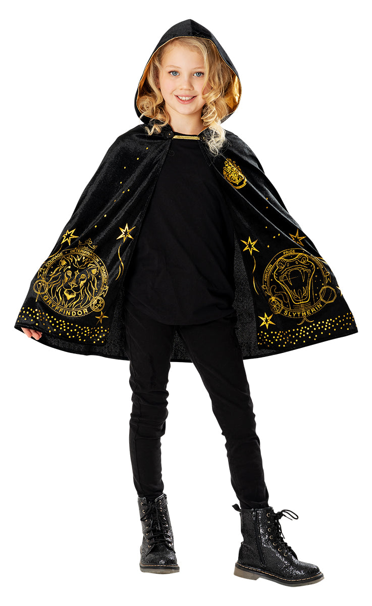 Esta capa con capucha y detalles dorados hará que entres a formar parte del mundo de magia y hechicería en el colegio Hogwarts. La talla es infantil y unisex. Este es un producto de la licencia oficial de Harry Potter.