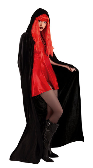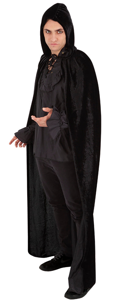 La capa negra efecto terciopelo con capucha, es un accesorio perfecto tanto para él como para ella, perfecto para tu noche de halloween o para tus fiestas más tenebrosas