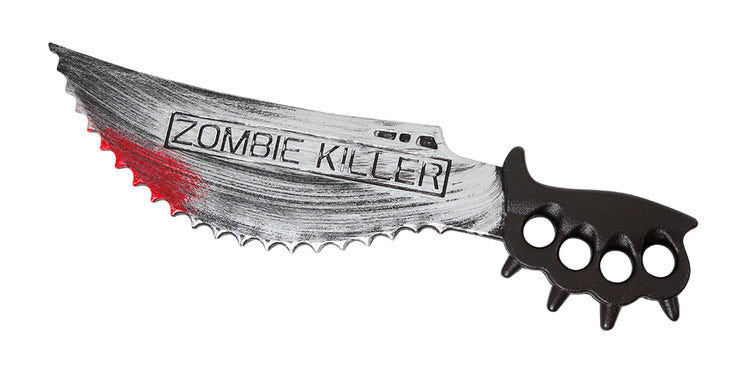 El cuchillo zombie killer es una de las armas más utilizadas por los zombie de las historias de terror y masacre. Este cuchillo mide 50 cm, lo suficiente para dar la ilusión que es real y complementar tu disfraz de halloween.