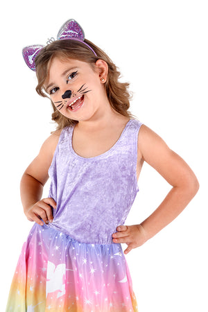 Diadema de gatita coronita con flores de colores brillantes dentro de sus orejas. Complementa tu disfraz de gatita con esta diadema y prepárate para las fiestas de carnaval y halloween.