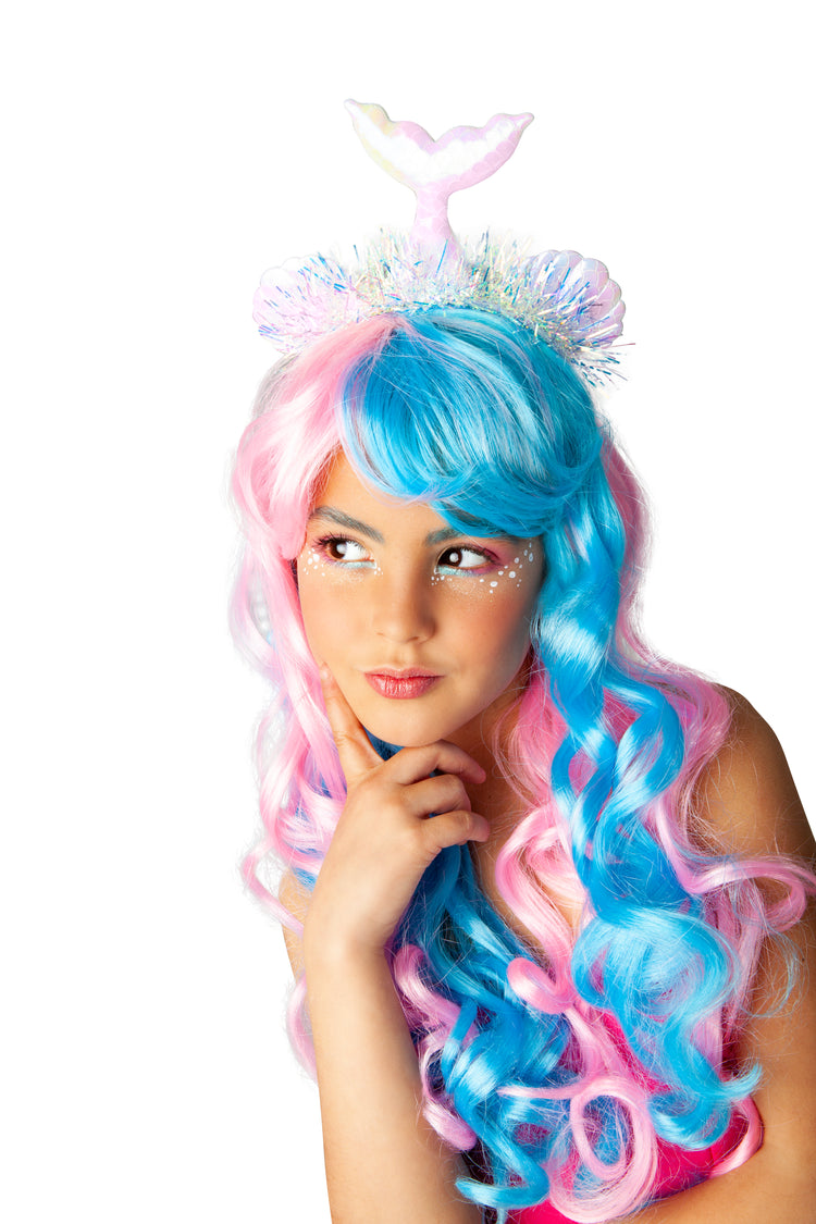 Diadema de sirenita de color rosa y azul con una divertida cola de sirena. Un accesorio ideal para complementar el mágico disfraz de sirenita.