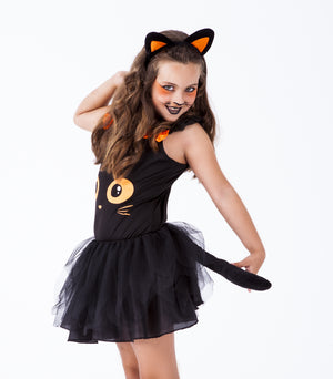 Disfraz gatita negra para niña, un miembro de la familia de los Tutu-Weens, los disfraces con tutú más fashion de Halloween. Disfraz compuesto por top impreso, diadema, tutú con cola, guantes y medias