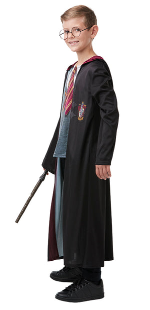 Disfraz Harry Potter infantil compuesto de túnica con camisa y corbata impresa, gafas y varita. El hechicero más famoso de la escuela de Hogwarts y el más admirado por todos. Su valentía y poder acabó con las fuerzas más oscuras. Dale magia a tu mundo y conviértete en este super mago. ¡Ideal para cumpleaños, carnavales, halloween y fiestas de disfraces! Este producto es oficial de licencia Harry Potter.