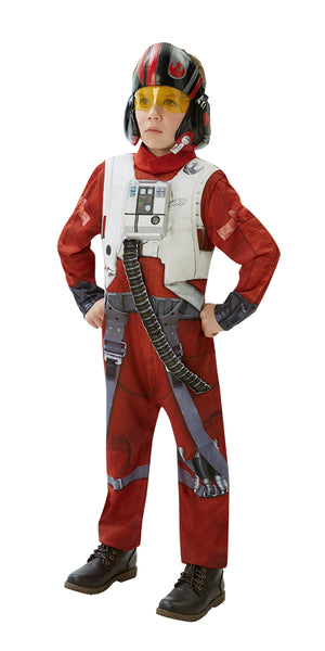 Disfraz Xwing figther infantil original de la película Star Wars episodio 7. Con este Jumpsuit, chaleco y máscara te sentirás como el guerrero Xwing. Reúnete con tus amigos para rebelarse ante el imperio y vencer el lado oscuro. Este producto es oficial de licencia Star Wars