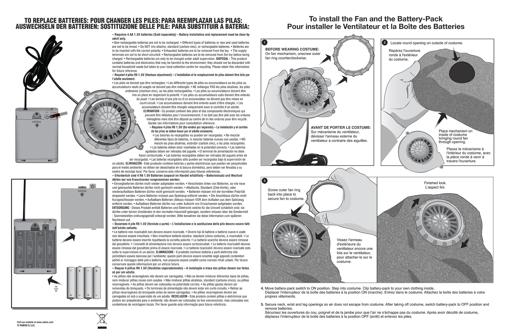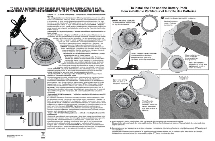 Inflatable Jumpsuit, Battery Pack Requires 4Xaa Batteries (Not Included).Instructions For Costume And Battery Pack Included