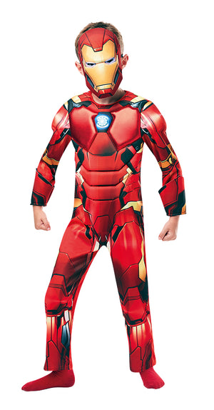 Disfraz infantil deluxe de Iron Man compuesto de jumpsuit con pecho acolchado y detalles en 3D, puños y máscara foam. Tony Stark además de ser multimillonario es un ingeniero que construyó una armadura para salvar su vida y más tarde no dudo en utilizarla para proteger al mundo como Iron Man. Dale magia a tu mundo y conviértete en este superhéroe. ¡Ideal para cumpleaños, carnavales y fiestas de disfraces! Este producto es oficial de licencia Avengers.