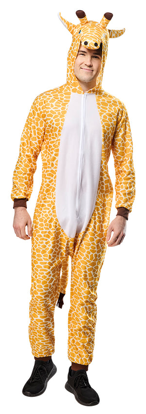 Disfraz de adulto de jirafa compuesto de jumpsuit y capucha. Invita a tus amigos a crear un grupo inspirado en animales y cada uno llevará el vestido de su animal preferido. El tuyo sin duda: La Jirafa. Ideal para carnaval y fiestas de disfraces.