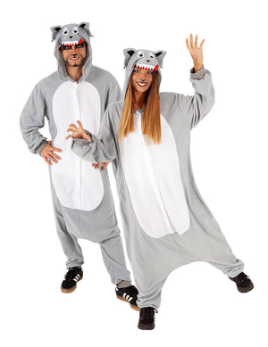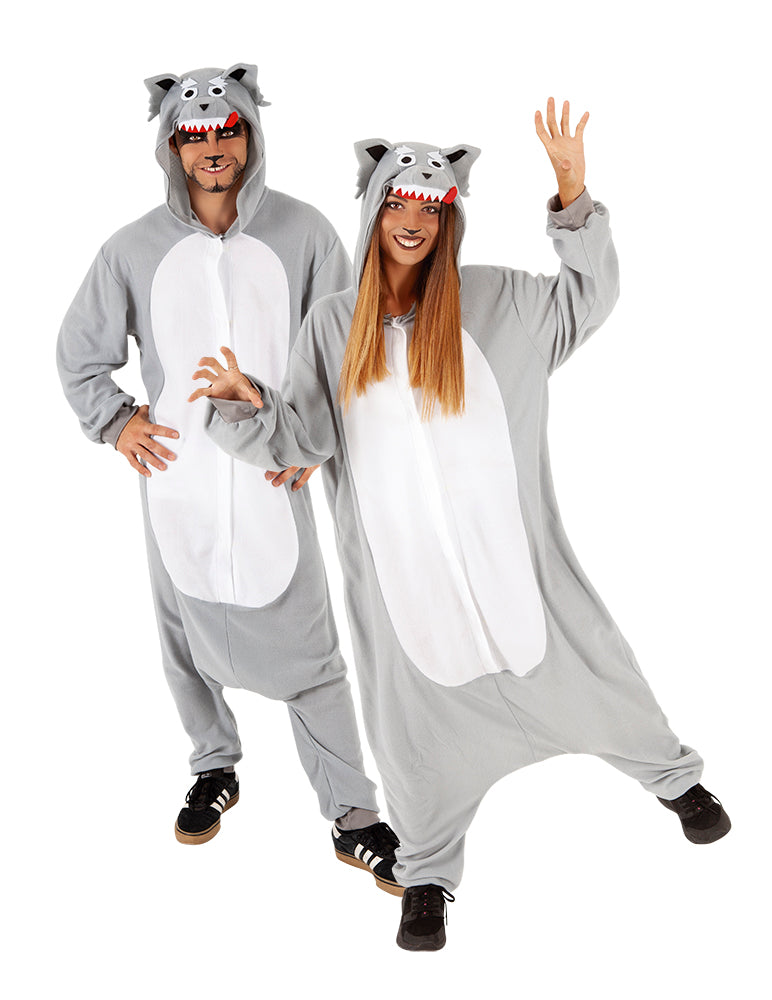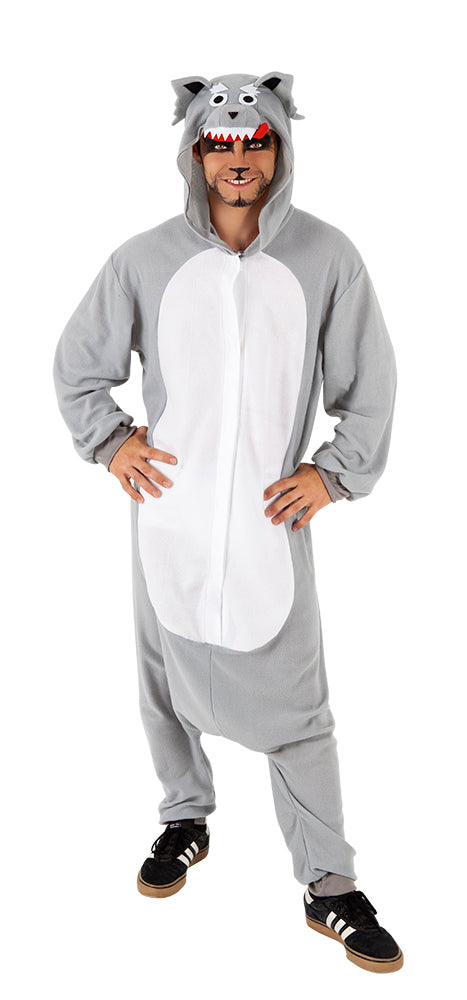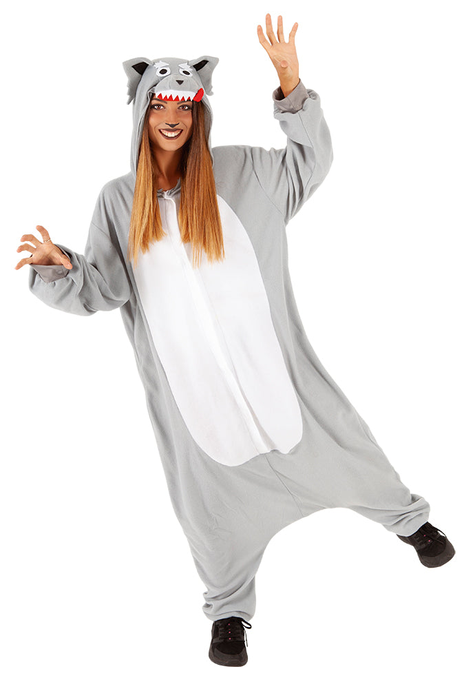 Disfraz de adulto de obo feroz compuesto de jumpsuit con cola y capucha. Invita a tus amigos a crear un grupo inspirado en animales y cada uno llevará el vestido de su animal preferido. El tuyo sin duda: El lobo. Ideal para carnaval y fiestas de disfraces.