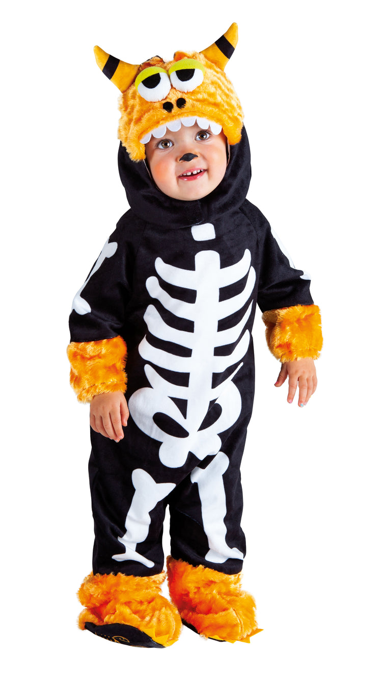 Disfraz de la colección Monsterweens para los más peques de la familia, este monstruo huesis, es un esqueleto muy simpático y hará las delicias de los peques y de los papis. El disfraz contiene pelele con velcro, gorro con ojos saltones