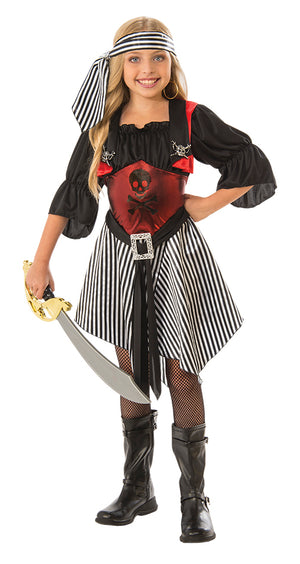Disfraz de Pirata escarlata infantil compuesto de Vestido, cinturón y pañuelo para la cabeza. Invita a tus amigos a crear un grupo de piratas en busca de tesoros escondidos. Sal a mar abierto para explorar nuevas tierras donde las riquezas se esconden y tu serás el primero en encontrarlas. Ideal para cumpleaños, halloween y fiestas de disfraces.