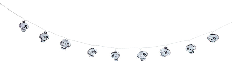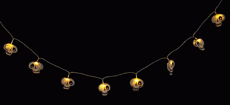 La guirnalda calavera es la decoración perfecta, ilumina la noche de Halloween y sus simpáticas caras ahuyentarán a los más malotes de la fiesta que solo buscan la oscuridad.