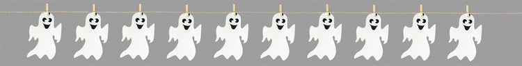 Guirnalda de Fantasmas, una decoración ideal para tu habitación o en otro espacio de tu fiesta de Halloween. Incluye pinzas para poder colgar los fantasmas como quieras.