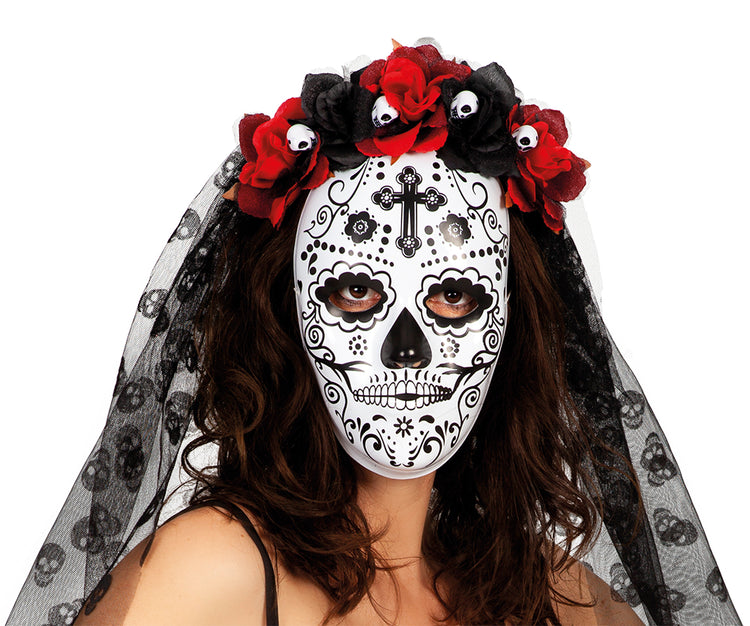 Una fantástica máscara de catrina misteriosa llena de color y flores. ¡Una representación viva del día de los muertos! Ideal para celebrar halloween