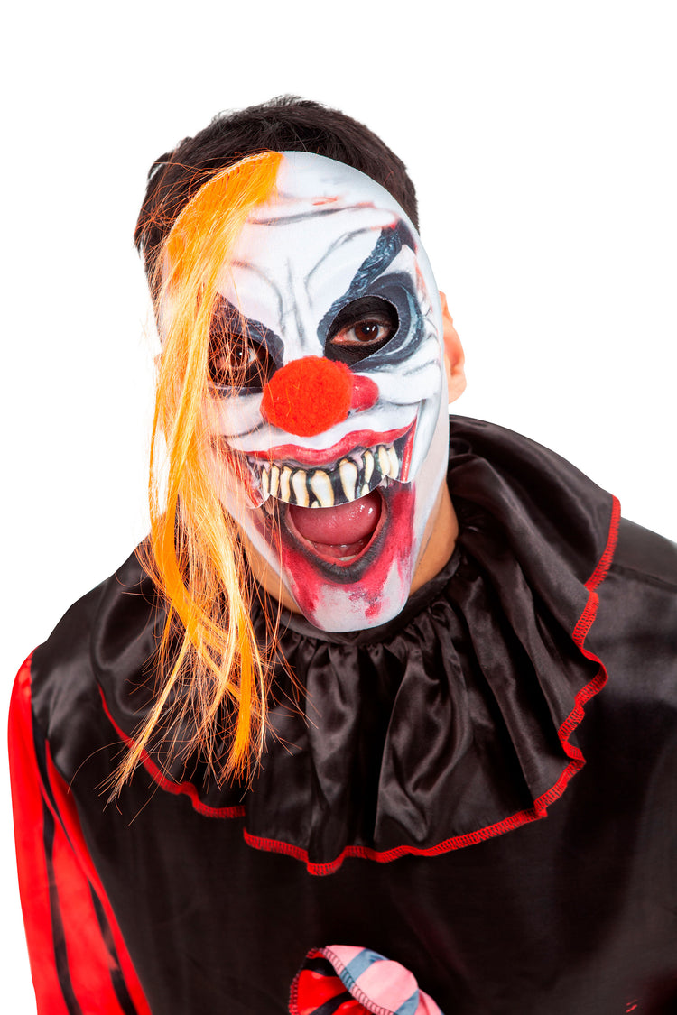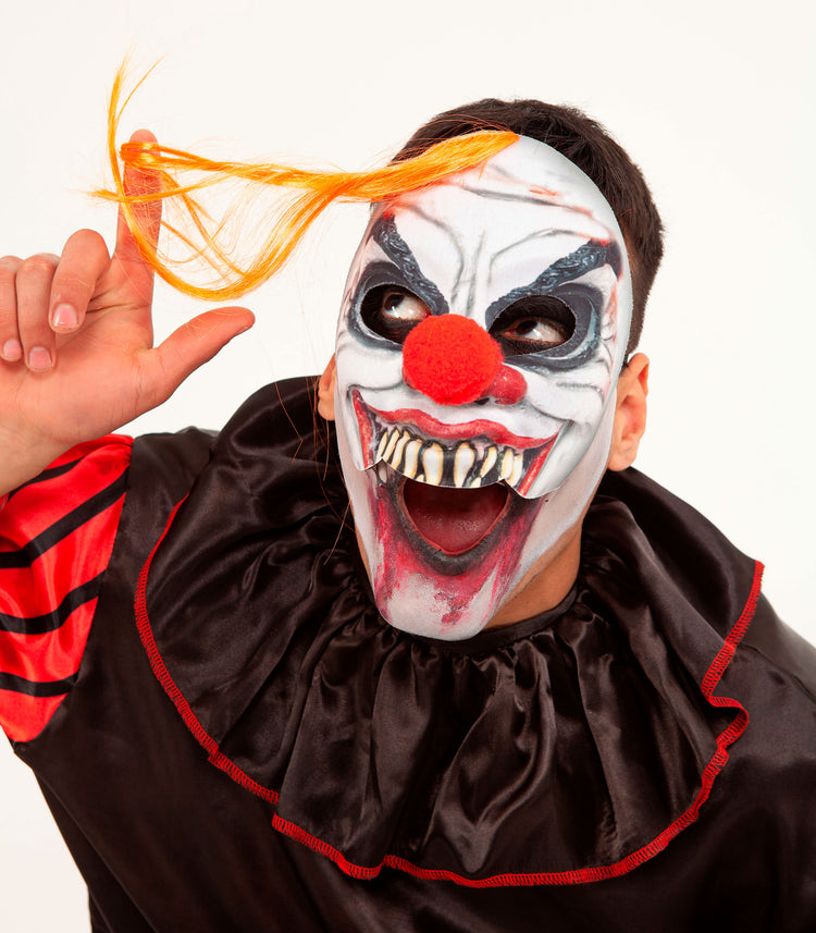 Esta media máscara de payaso con mechón es el complemento ideal para tu disfraz de payaso con un efecto súper realista hará las delicias en la noche de halloween