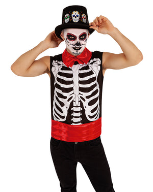 Sombrero de copa catrín con luz, el accesorio perfecto a tu disfraz del día de los muertos, tiene tres efectos de luz que serán la sensación de la fiesta de halloween además incluye las pilas.